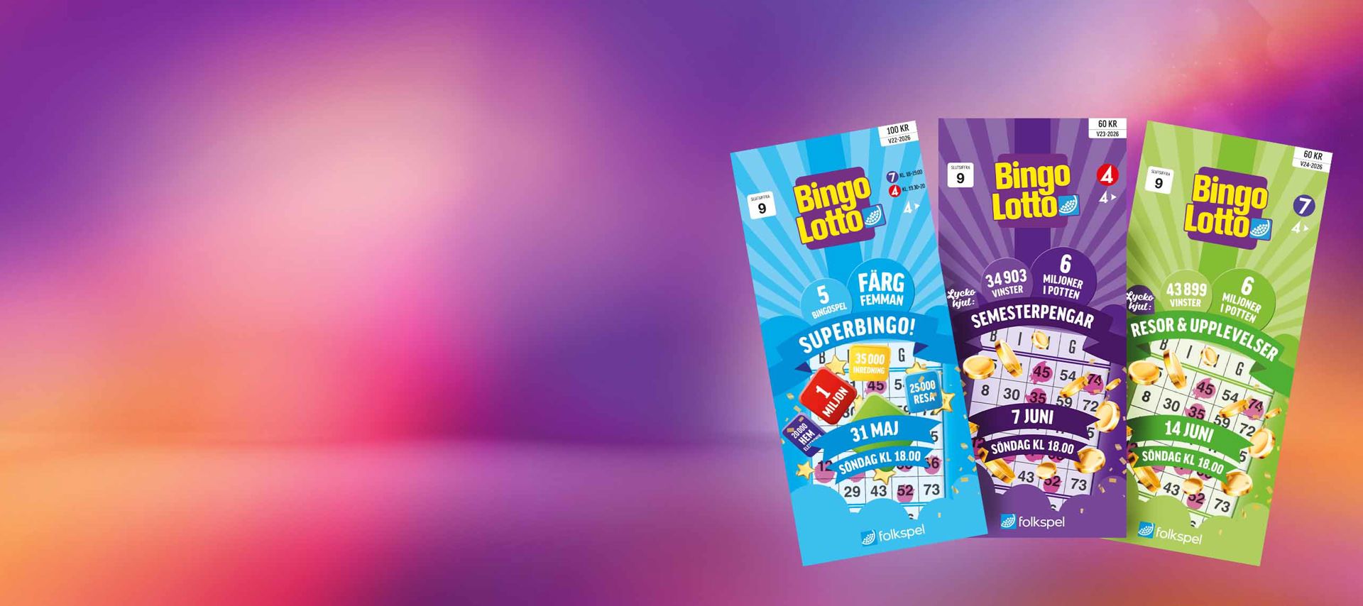 Starta en prenumeration på Bingopaketet idag och få tre extra bingolotter: en till Superbingo 31/5, en till 7/6 och en till 14/6.