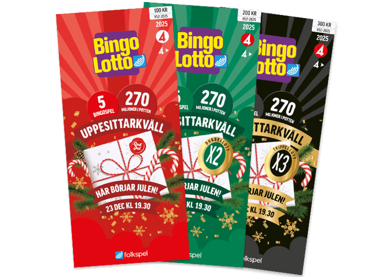 Välkommen till Sveriges största Nyårsfest där vi håller dig sällskap hela vägen över tolvslaget! Vi bjuder på fyra bingospel, Nyårslotto och mycket mer. Vi ses på TV4 och TV4 Play 31 december med start 20.00!