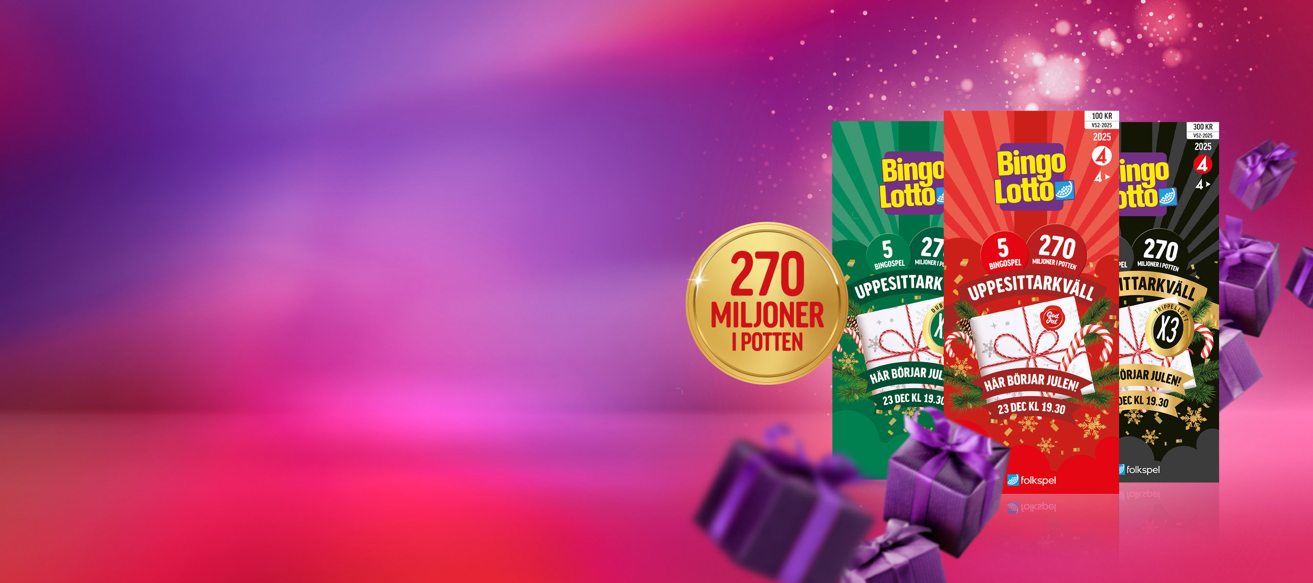 BingoLottos Uppesittarkväll bjuder på 5 bingospel, miljoner i potten och sänds i TV4 och på TV4 Play, kl. 19.30 den 23 december!