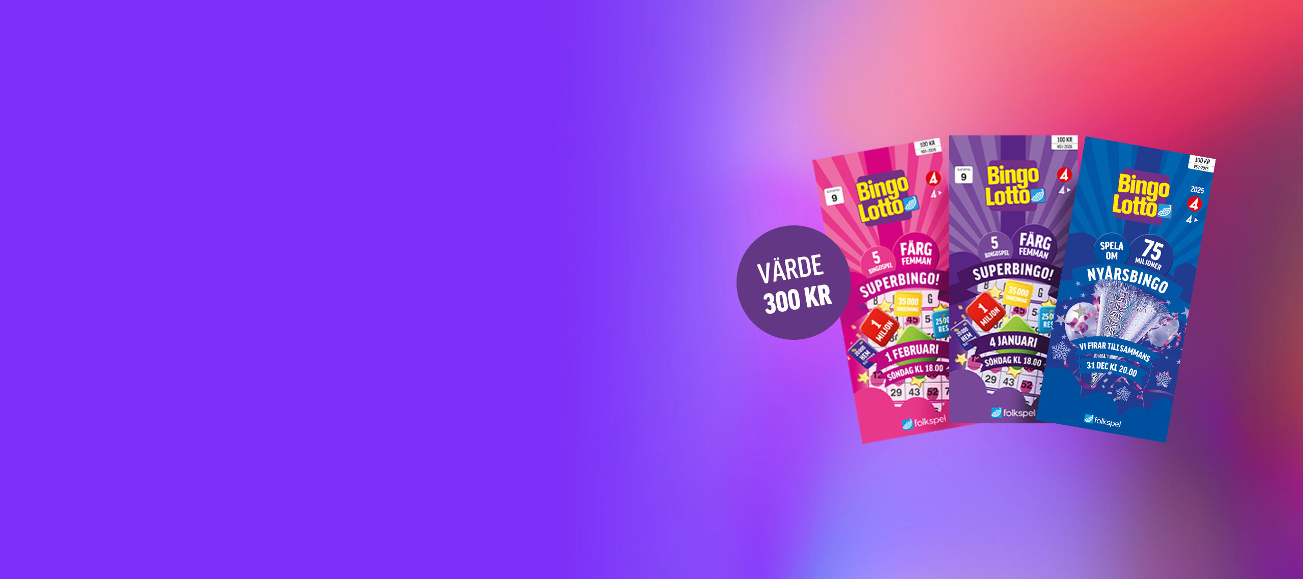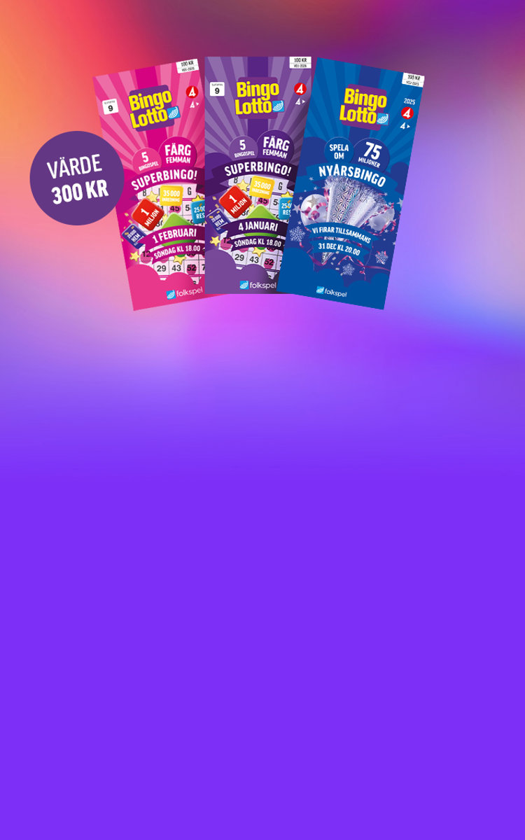 Starta prenumeration på Bingopaketet och få tre extra lotter: 1 Nyårslott samt SuperBingo 4/1 och 1/2 (värde 300 kr). Ingen bindningstid. ✔️ Nya lotter varje vecka ✔️ Välj 1–3/vecka ✔️ Hem i brevlådan Gäller en begränsad tid.