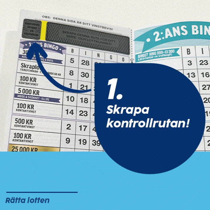 För att kunna ta ut din vinst digitalt behöver du en mobiltelefon med kamera och ett Folkspelskonto. Gå in på folkspel.se/ratta-lotten via din mobiltelefon och följ instruktionerna på skärmen. Skrapa kontrollrutan som finns längst ner till vänster på lotten och skanna koden. Om du har vunnit får du information om det, och vinster upp till 1000 kronor sätts in direkt på ditt Folkspelskonto. Vinster upp till 1000 kronor kan även lösas in hos din närmsta återförsäljare.