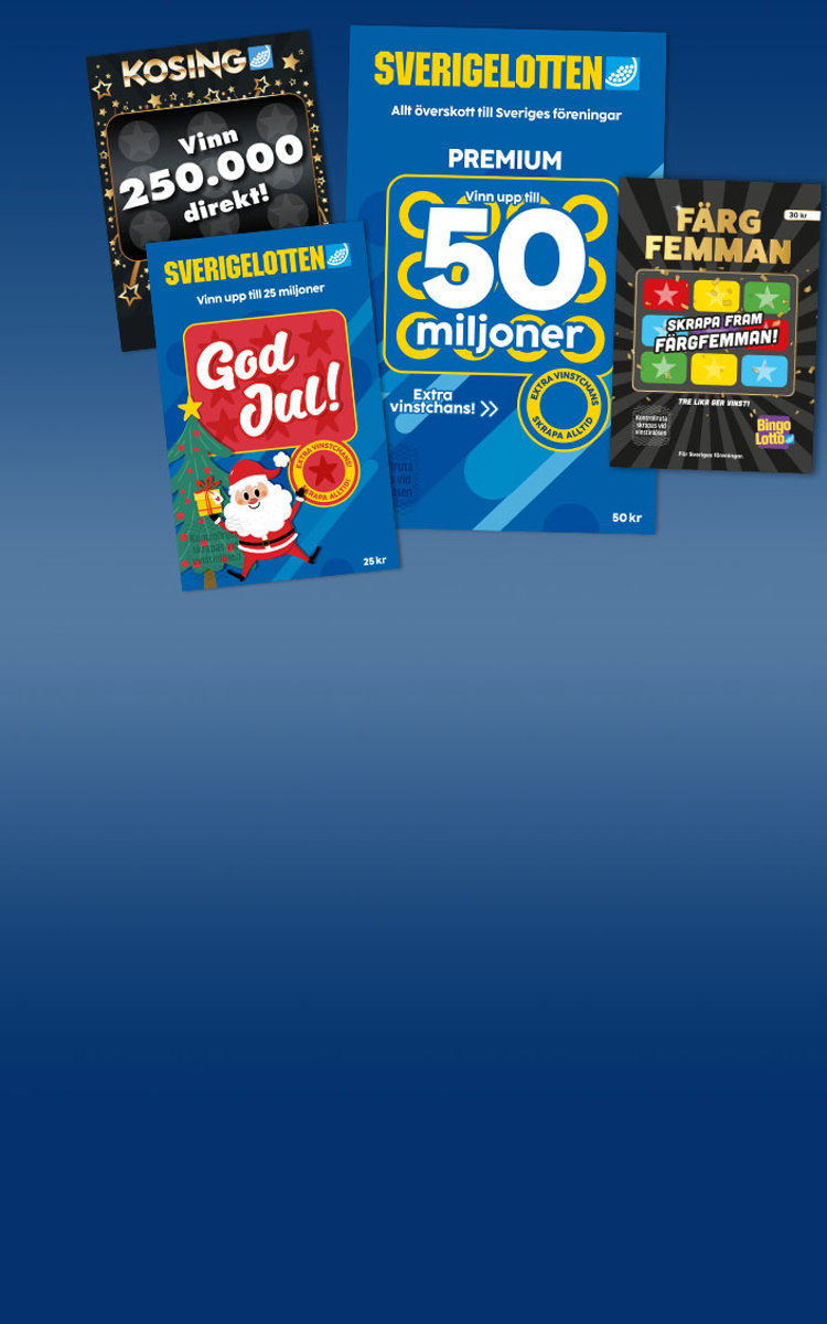 På Folkspel kan du välja mellan tre olika skraplotter med olika vinster, för att matcha den skrapupplevelse du vill ha. Välj mellan våra klassiska Sverigelotter, Färgfemman i skraplottsformat eller vår billigaste skraplott Kosing. Hur mycket en skraplott kostar skiljer sig beroende på vilken lott du väljer. På Sverigelotten kan du dessutom prenumerera på lotter och få nya vinstchanser varje månad.